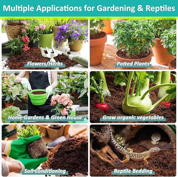 - Wide Application: Suitable for all gardening applications, potted plants, grow microgreens, container gardens, raised garden beds, indoor plants, flowers, vegetables, herbs; Also suitable for bedding of various reptiles, it worked great for making organic compust; Tips: When mixing with water to hydrate make sure to start out slowly so you achieve the consistency you want