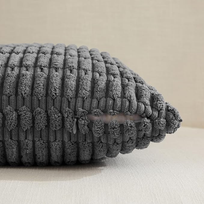 Fancy Homi 2 Packs Dark Grey Decorative Throw Pillow Covers 20x20 Inch for Living Room Couch Bed Sofa, Rustic Farmhouse Boho Home Decor, Soft Striped Corduroy Square Cushion Case 50x50 cm
