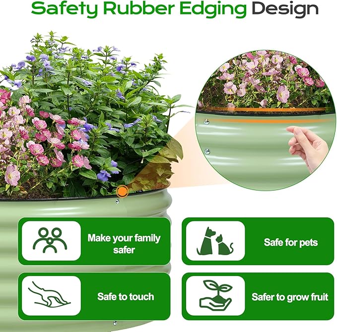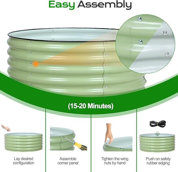 - Premium Material: This 17-inch tall circular raised garden bed is crafted from galvanized steel, featuring a zinc coating that protects the steel from rust by sacrificing itself, requiring minimal maintenance, offering a longer lifespan, and ideal for humid environments Premium Material: This 17-inch tall circular raised garden bed is crafted from galvanized steel, featuring a zinc coating that protects the steel from rust by sacrificing itself, requiring minimal maintenance, offering a longer lifespan, and ideal for humid environments