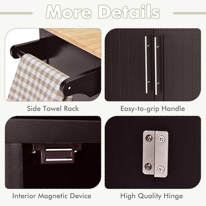 - 【Wide Application & Easy Assembly:】With movable design and classic look, it can serve you in different places, including kitchen, dining room, restaurant, etc. Additionally, it features clear instruction and all needed accessories for easy and quick installation. Its finished dimension(without towel bar) is 37” x 18” x 37”(L x W x H).
