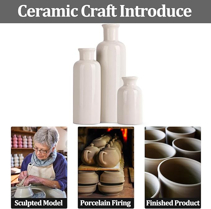 - Showcase Your Style With These Rustic Vases for Decor- Decorating Your Home Brings Your Personality To Life. This Stunning Minimalist White Ceramic Small Vase Set Of Three Works Great With Faux Flowers, To Take Your Home Décor To The Next Level. Trendy Look These Vases Will Look Beautiful No Matter How You Choose To Use Them