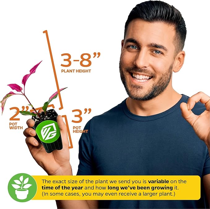 - SIZE UPON ARRIVAL: Your Alternanthera Party Time arrives between 3-8 inches tall in a 3-inch-deep pot (4.90 fl oz/145.0 mL). These small starter plants acclimate well to gardens, containers, and landscape projects.