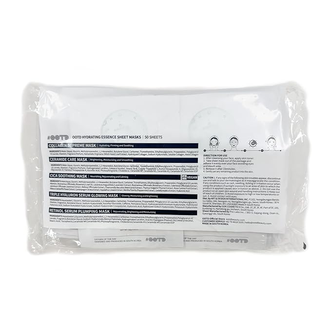 - Vegan Certified: The face mask sheet bundle is vegan certified with ingredients like collagen, hyaluronic acid, ceramide, cica, peptide, retinol and vitamin C.