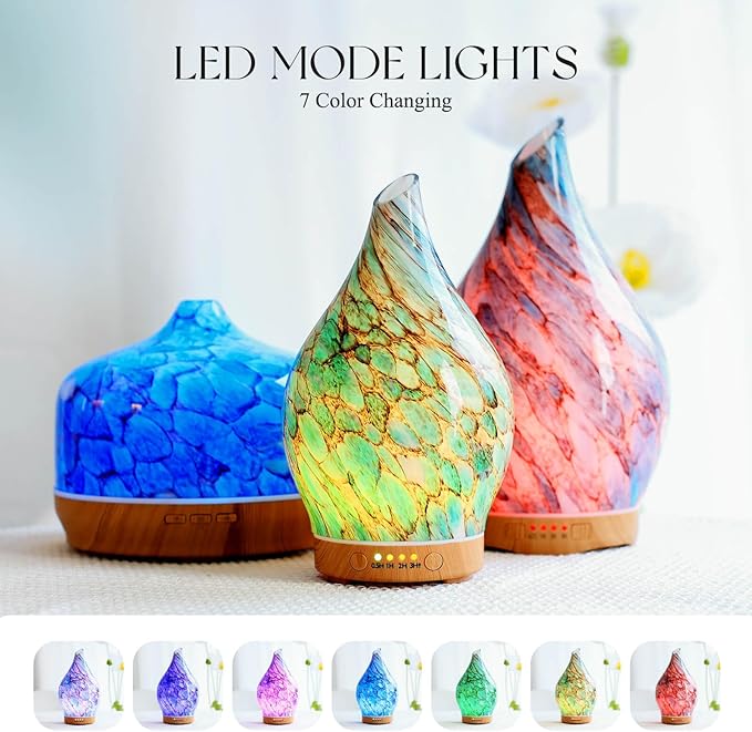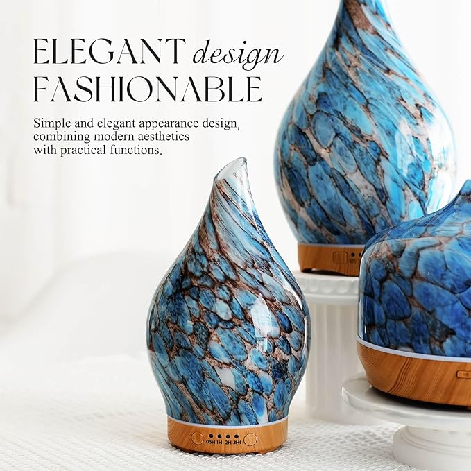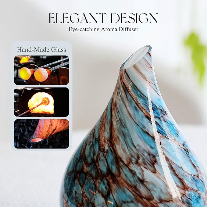 - UNIQUE ART DECORATIVE DESIGN - Our 150ml glass essential oil diffuser has an elegant starry pattern glass cover and wood grain decorative base. It is very suitable for your bedroom, living room, children's room, study room, office, and yoga room.