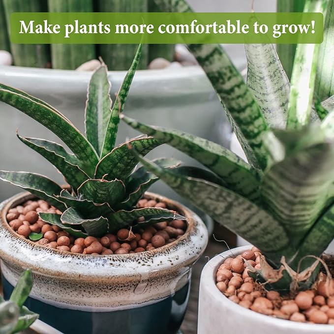 - 100% Natural Leca Clay Pebbles for Plants: Made of natural clay, baked at high temperature into round leca balls, pH neutral helps remove excess acidity, sturdy, no odor, not easy to break, you can safely use it in your garden to help plants grow healthier and faster; Widely used for plant pavement, pot base,orchid and hydroponics