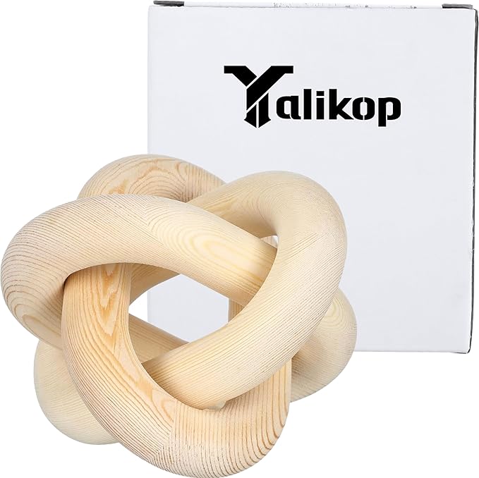 3 Link Wood Knot Decor - Hand Carved Coffee Table Decoration, Boho Chain Link Decor, Modern Shelf, Rustic Objects for Home Living Room Bedroom(Natural)