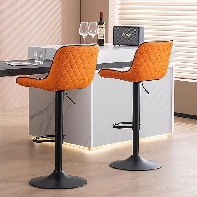 YOUNUOKE Orange Bar Stools Set of 2, Height Adjustable, 360° Swivel, Faux Leather Upholstered Barstools with Back, Mid-Century Modern Design, Stools for Kitchen Island, Home Bar, Bistro, Restaurant