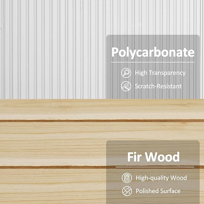 - Fir Wood: The wooden greenhouse is crafted from pure fir wood, with a polished exterior that showcases a rustic style