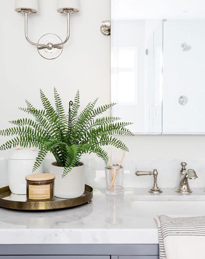 DILATATA Faux Plant Indoor in Ceramic Pot 16" Artificial Potted Boston Fern Fake House Plants for Desk Office Bathroom Garden Decoration