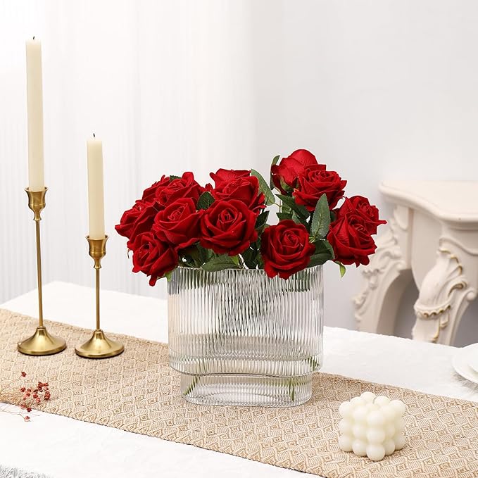 - Vase for Flowers: YANWE1 Ribbed Glass Vase is perfect for displaying your flower bouquets. This fluted vase adds a touch of elegance and simplicity to your flower. Beautiful decoration for living room, dining room table, coffee table and shelf