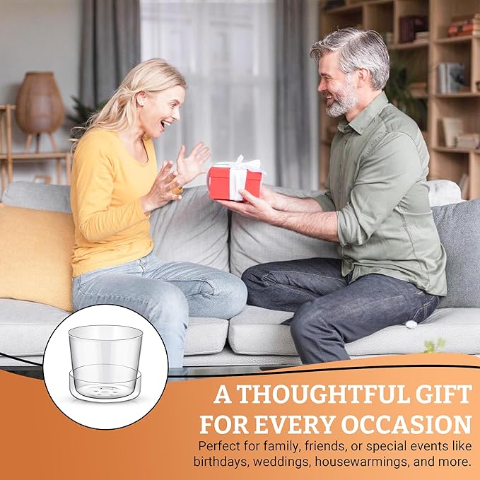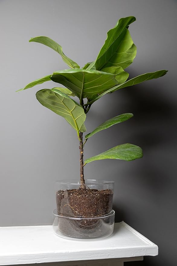 Sheer Glass Pot Planter with Drainage Holes & Tray - Decorative & Modern for All House Plants (4 Inches)