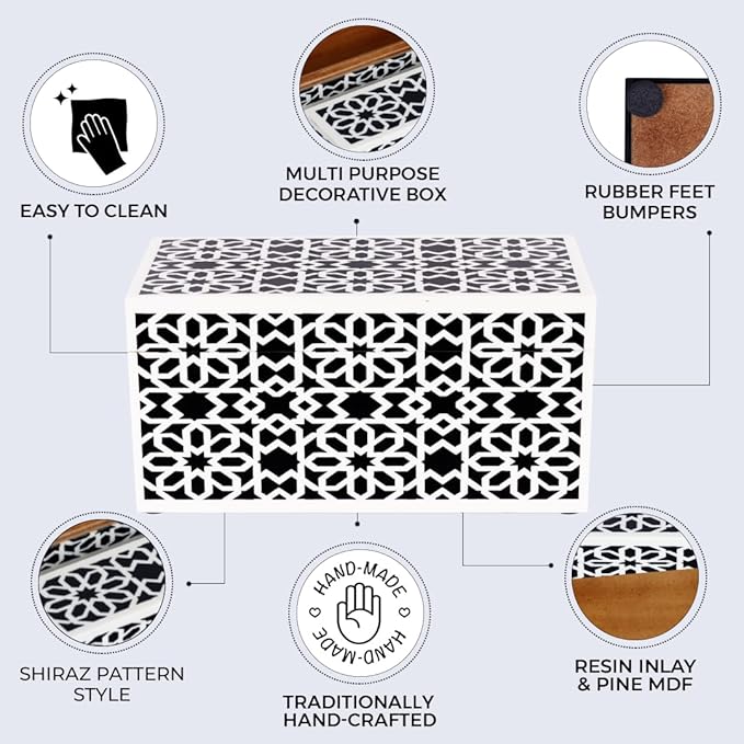 - Stylish Decorative Storage Box for Home Decor: Enhance your living space with a modern yet timeless decorative box featuring elegant handcrafted Shiraz patterns. Perfect as a coffee table decor accent, mantle piece, shelf organizer, or hallway console accessory, this box blends seamlessly with modern, boho, vintage, western, or minimalist interiors.