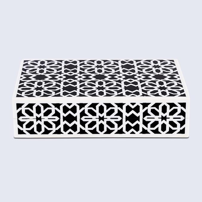 Handicrafts Home Decorative Storage Box with Lid- 8x5x2” Small Keepsake, Trinket Box, Memory Box- Decorative Boxes for Home Decor, Centre Table, Giftable Storage Accent- Shiraz- Black White