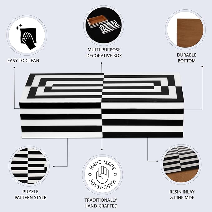 - Craftsmanship Through Three Generations: Made from premium materials including Resin Inlay & Pine MDF, this sturdy and durable box ensures your valuables are kept safe. The smooth finish and detailed craftsmanship make it a beautiful addition to your home.