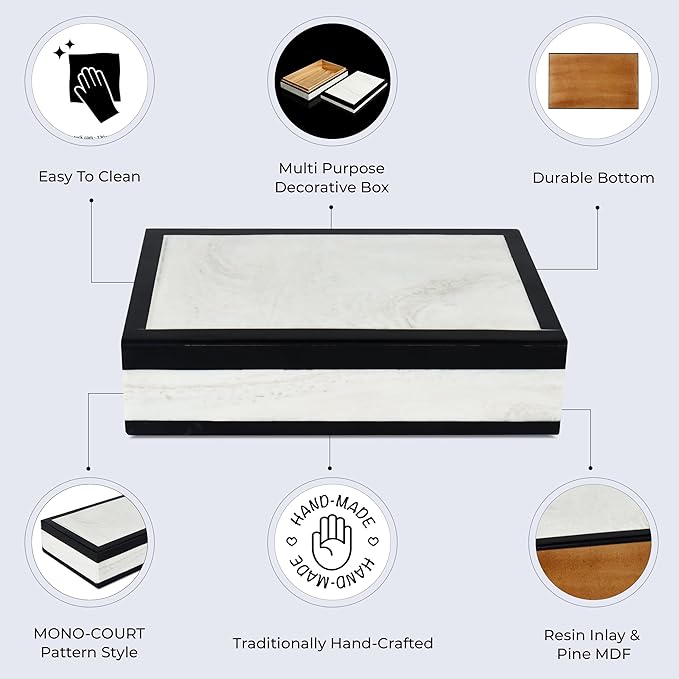 - Craftsmanship Through Three Generations: Made from premium materials including Resin Inlay & Pine MDF, this sturdy and durable box ensures your valuables are kept safe. The smooth finish and detailed craftsmanship make it a beautiful addition to your home.
