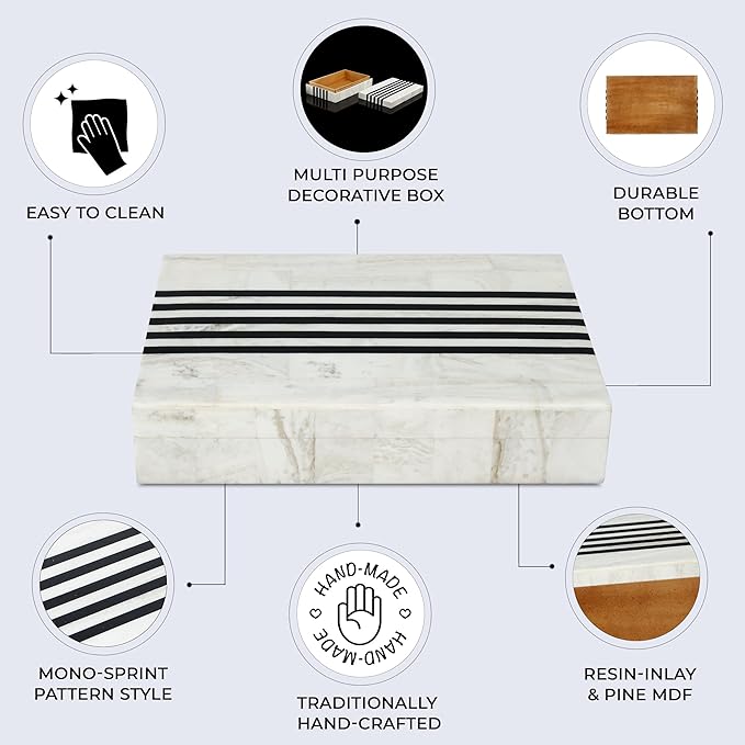 - Craftsmanship Through Three Generations: Made from premium materials including Resin Inlay & Pine MDF, this sturdy and durable box ensures your valuables are kept safe. The smooth finish and detailed craftsmanship make it a beautiful addition to your home.