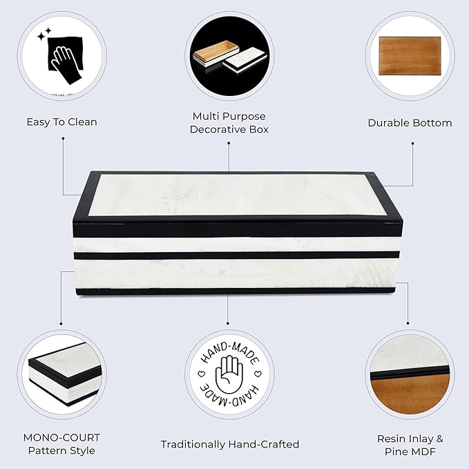- Craftsmanship Through Three Generations: Made from premium materials including Resin Inlay & Pine MDF, this sturdy and durable box ensures your valuables are kept safe. The smooth finish and detailed craftsmanship make it a beautiful addition to your home.
