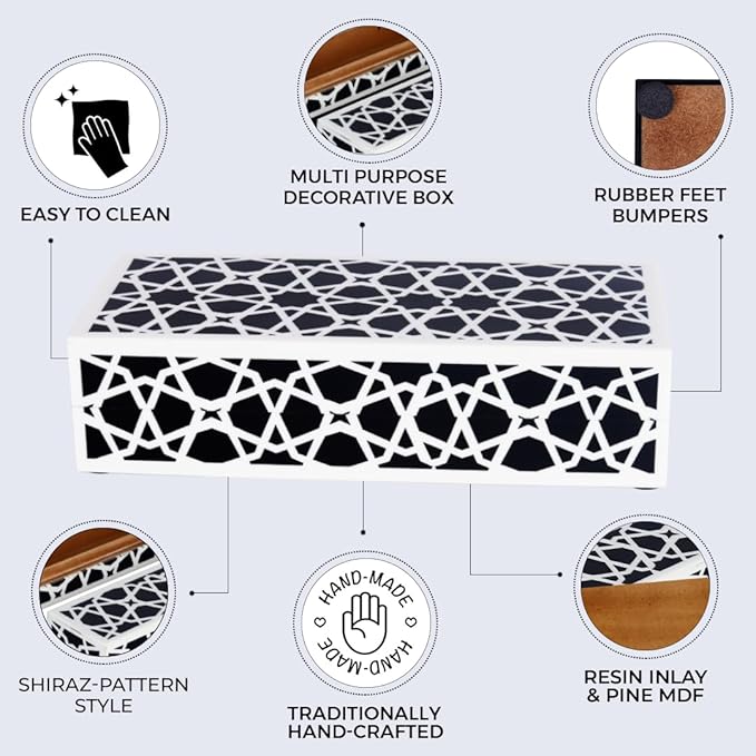 - Craftsmanship Through Three Generations: Made from premium materials including Resin Inlay & Pine MDF, this sturdy and durable box ensures your valuables are kept safe. The smooth finish and detailed craftsmanship make it a beautiful addition to your home.