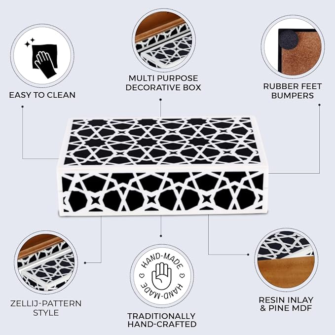 - Craftsmanship Through Three Generations: Made from premium materials including Resin Inlay & Pine MDF, this sturdy and durable box ensures your valuables are kept safe. The smooth finish and detailed craftsmanship make it a beautiful addition to your home.