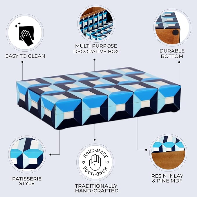 - Craftsmanship Through Three Generations: Made from premium materials including Resin Inlay & Pine MDF, this sturdy and durable box ensures your valuables are kept safe. The smooth finish and detailed craftsmanship make it a beautiful addition to your home.