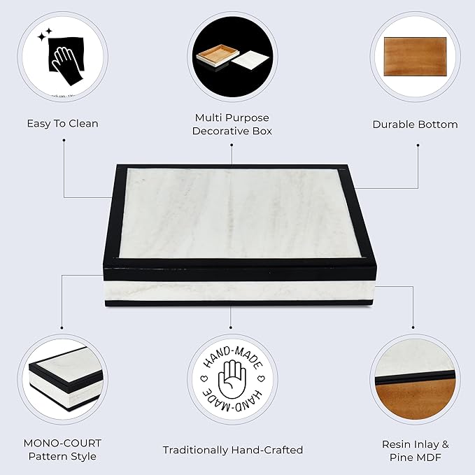 - Craftsmanship Through Three Generations: Made from premium materials including Resin Inlay & Pine MDF, this sturdy and durable box ensures your valuables are kept safe. The smooth finish and detailed craftsmanship make it a beautiful addition to your home.