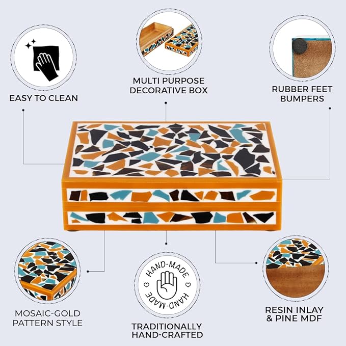 - Craftsmanship Through Three Generations: Made from premium materials including Resin Inlay & Pine MDF, this sturdy and durable box ensures your valuables are kept safe. The smooth finish and detailed craftsmanship make it a beautiful addition to your home.