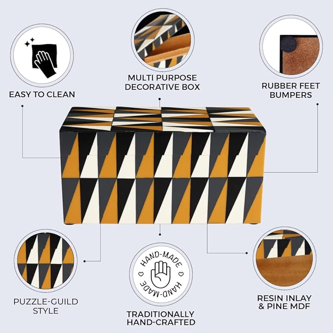 - Craftsmanship Through Three Generations: Made from premium materials including Resin Inlay & Pine MDF, this sturdy and durable box ensures your valuables are kept safe. The smooth finish and detailed craftsmanship make it a beautiful addition to your home.