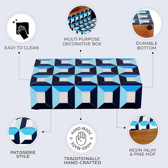 - Craftsmanship Through Three Generations: Made from premium materials including Resin Inlay & Pine MDF, this sturdy and durable box ensures your valuables are kept safe. The smooth finish and detailed craftsmanship make it a beautiful addition to your home.