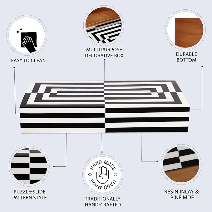 - Craftsmanship Through Three Generations: Made from premium materials including Resin Inlay & Pine MDF, this sturdy and durable box ensures your valuables are kept safe. The smooth finish and detailed craftsmanship make it a beautiful addition to your home.