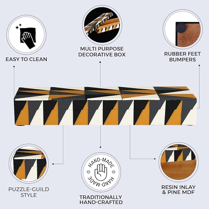 Handicrafts Home Modern Puzzle Decorative Storage Box - Rectangular, Yellow & Black Geometric Pattern - 10x2.5x1.5 Inches - Keepsakes, Trinkets, Home Decor - Coffee Table Storage, Memory Box