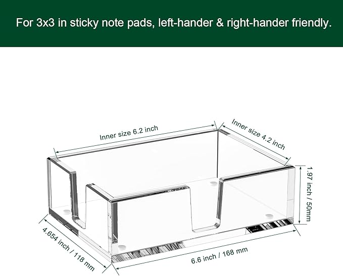 - Self-Stick Note Pad Holder: with square-shaped design and inside dimensions of L*W*H, it's wide enough to hold all kinds of 3-by-3-inch pad of paper, such as post notes, colorful sticky notes, cube paper or pads