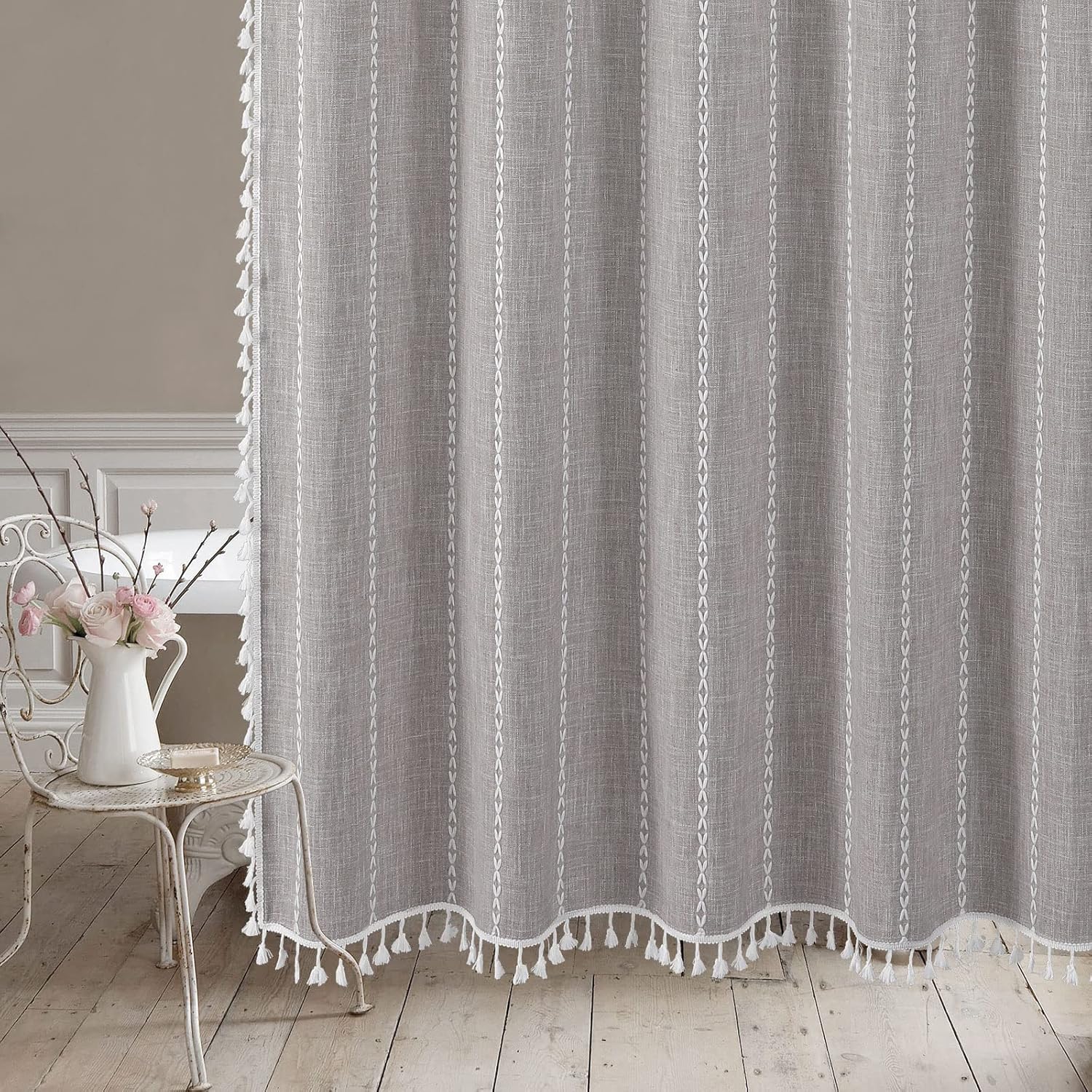 MitoVilla Boho Long Shower Curtain 72 x 78, Farmhouse 78 inch Long Polyester Linen Fabric Shower Curtains with Tassel for Chic Cottagecore French Rustic Bathroom Decor