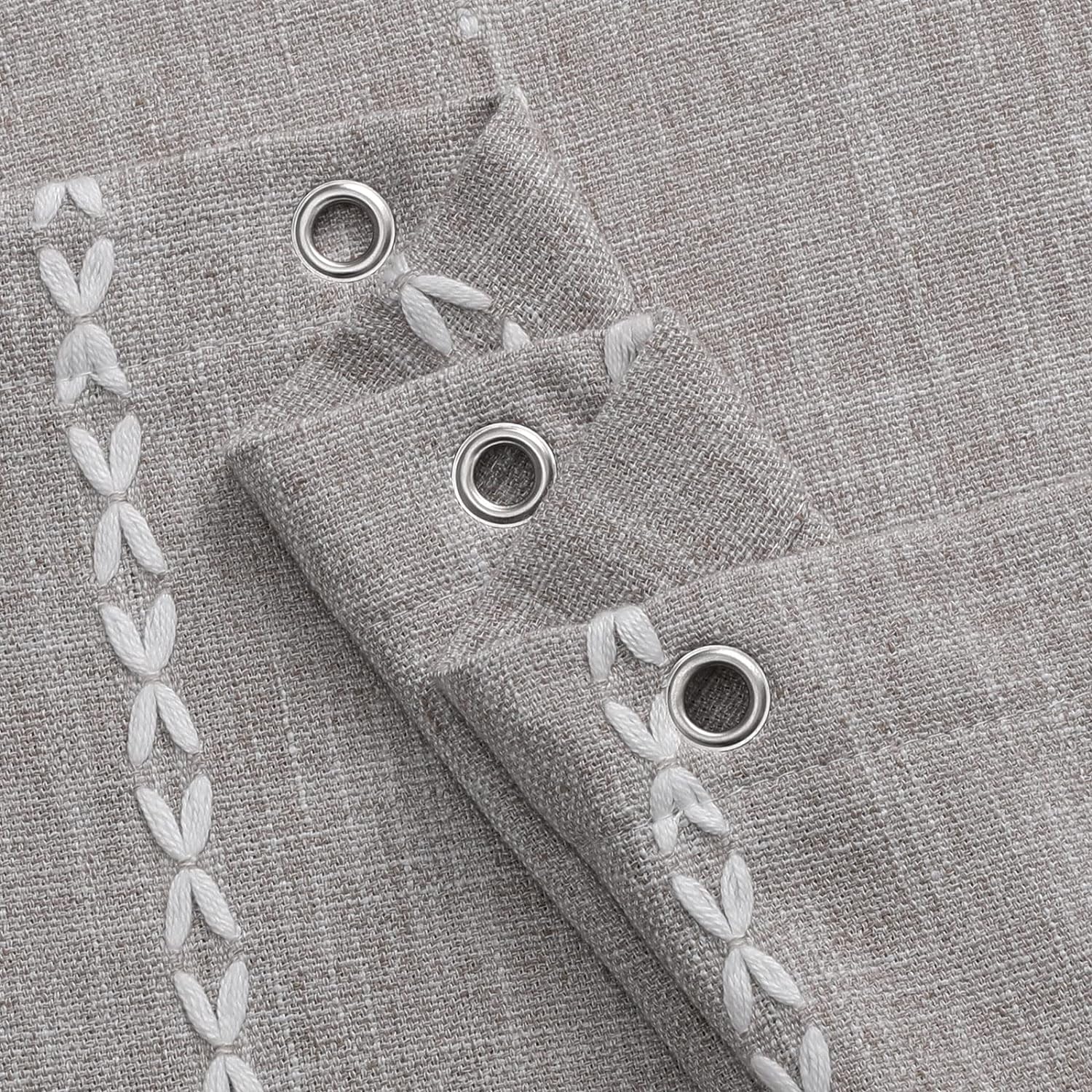 - Wrinkle Free & Ultra Thick Fabric - 310 GSM, 15% linen, 85% polyester creates farmhouse like effect for this white shower curtain, so that it could keep in place. The quality curtain is elegant and soft, which can deliver a rustic or country-like bathroom environment.