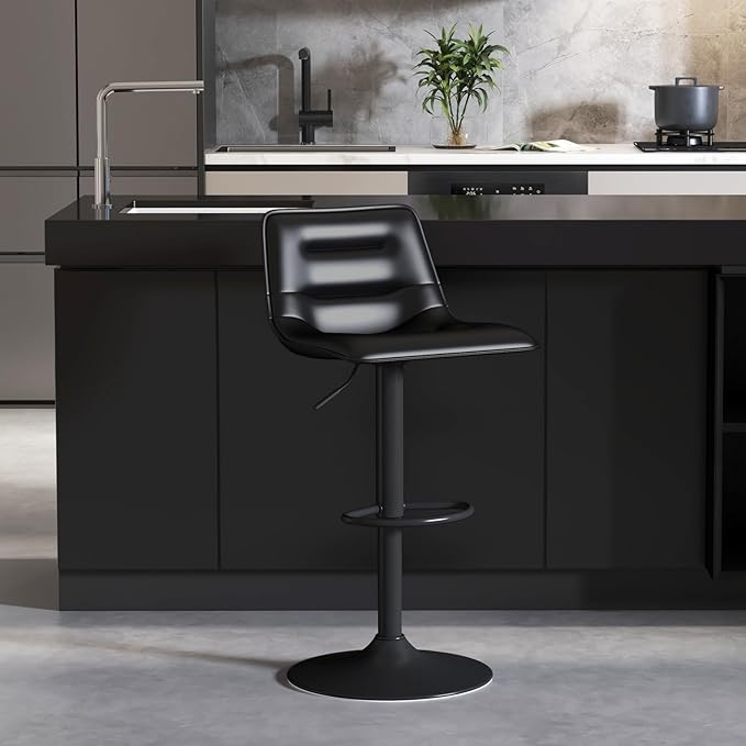 Brage Living Adjustable Bar Stool, Modern PU Leather Swivel Counter Height Barstool with Back, Armless Airlift Curved Bar Chair for Kitchen Dining Cafe, 1 pc (Black, Black Base)