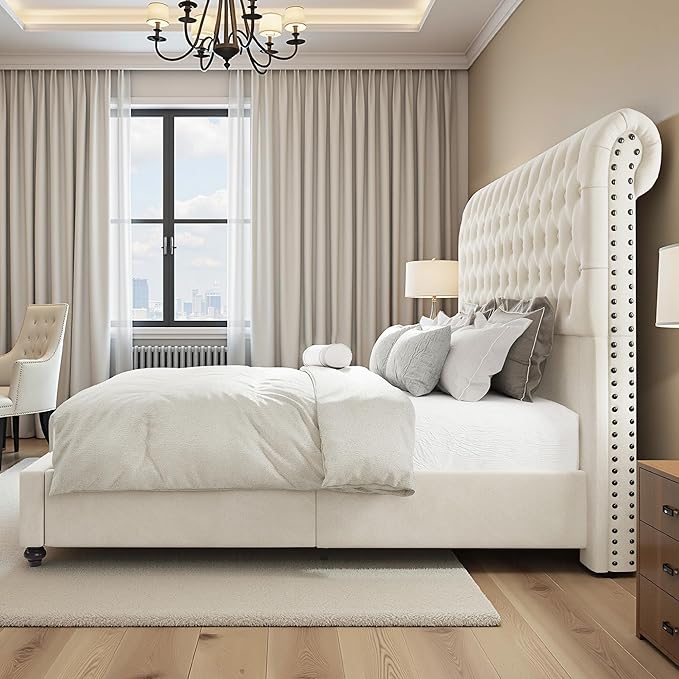 - Luxurious Upholstery: Enveloped in premium soft velvet upholstery, this platform sleigh bed offers superior breathability, which makes you feel comfortable and warm, creating a fantastic sense of atmosphere.