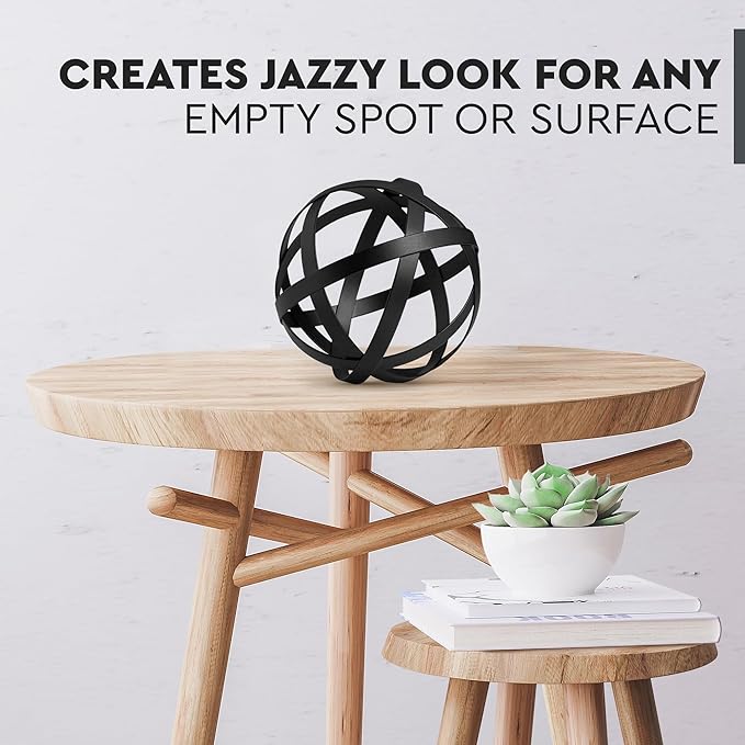 - 𝗛𝗮𝗻𝗱-𝗣𝗮𝗶𝗻𝘁𝗲𝗱: These decorative orbs are crafted from premium metal, and they are hand painted in a distressed black finish to complement any decor; the universal sphere size of 4.5 x 4.5 x 4.5 inches makes them versatile, allowing you to place decorative spheres anywhere with ease