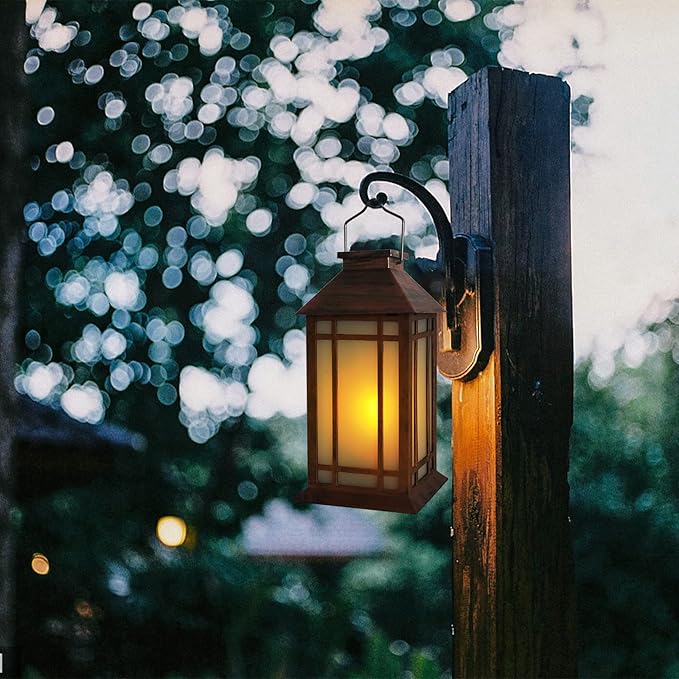 - Classical Retro Solar Lantern - The solar lantern is made of environment-friendly ABS plastic, which improves the durability and overall texture.It is equipped with a durable hook to hang it on a shepherds hook or under the porch