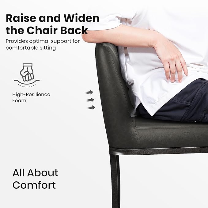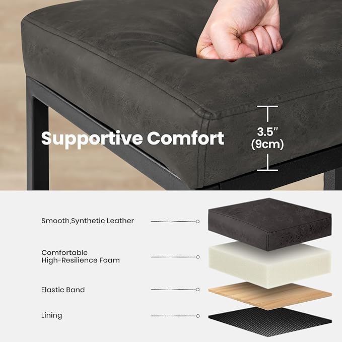- 🥛Durability Bar Stools: Crafted with high-quality PU leather, is known for its durability and Animal-friendly. It is resistant to wear and tear, less prone to cracking or peeling compared to genuine leather. The cushions material has a nice pattern and texture to them and are surprisingly rather comfortable to the bum and back. It can be wiped clean with a damp cloth, easy to clean
