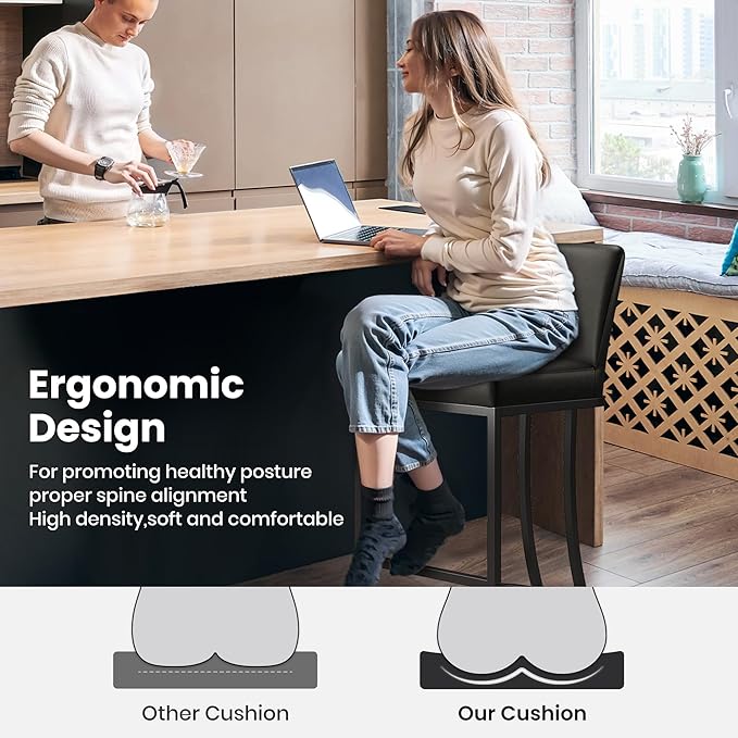 - 🍸Ergonomic Support: The backrest on bar stools provides essential ergonomic support to the lower back, especially beneficial for familiy may be sitting for longer periods of time. Also provides additional support, allowing family or friends to lean back and relax while enjoying their drinks or meals, enhance the overall comfort and enjoyment of the seating experience