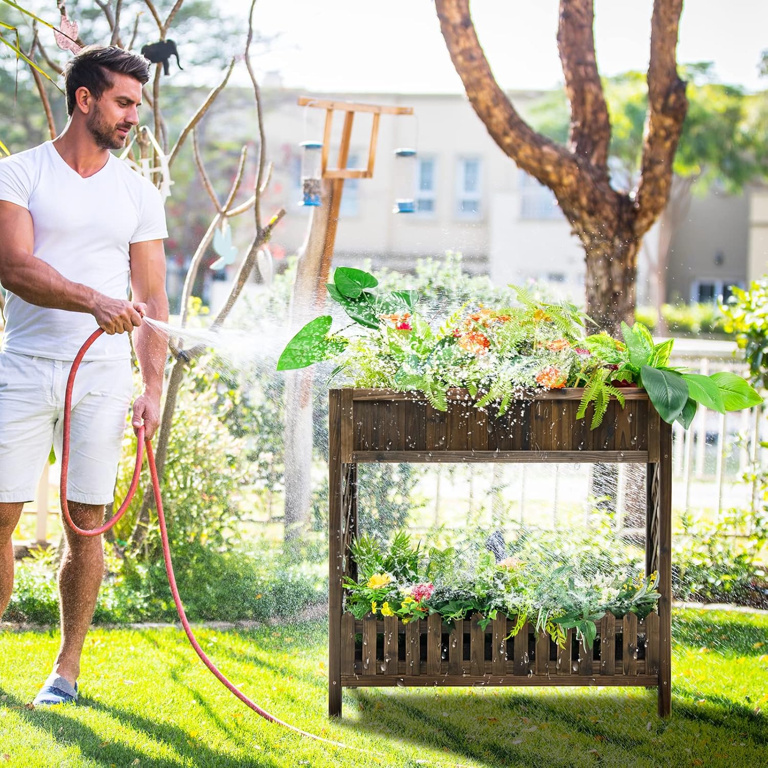 - 🪴【Wide Applications】With natural colors and natural wood grains, our 2 tiers elevated wood planter brings a rustic style to your garden. You can grow vegetables, flowers, fruits, herbs in the backyard, balcony, patio, etc.