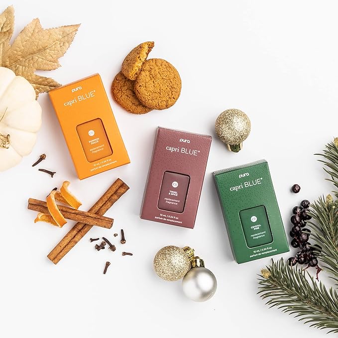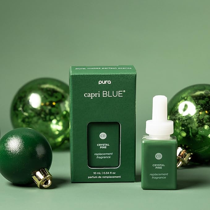 - CB + Pura Oil Diffuser Refills (Pack of 2): Capri Blue Crystal Pine is now available in Pura Refills! The Pura app allows you to control your smart plug diffuser from anywhere, plus you can set custom schedules and choose your fragrance level to always keep your house smelling fresh. So, bring on those unexpected guests and create the ultimate fragrance experience with your Pura Crystal Pine Capri Blue Refills! (Pura diffuser plug in sold separately.)