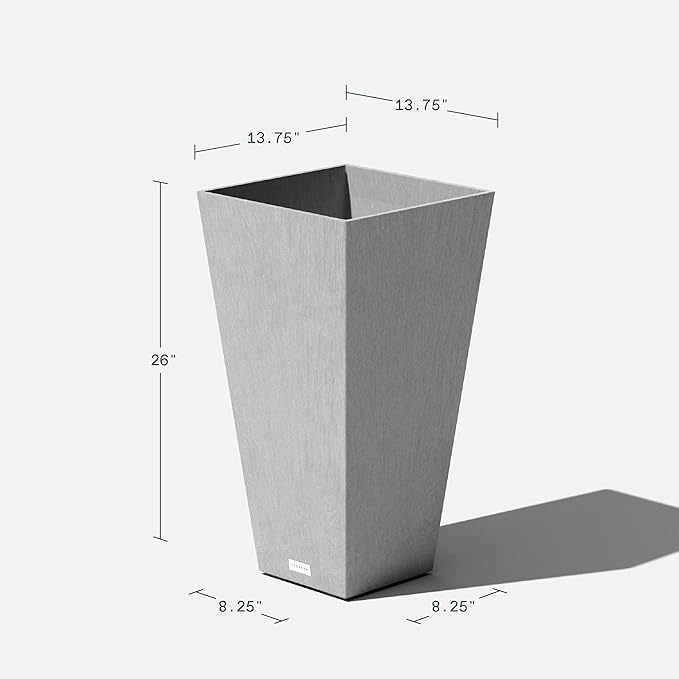 - PLASTIC COMPOSITE MATERIAL: This single wall molded planter has a smooth, scratch-resistant finish that is made from a high-grade Polypropylene composite, giving the tall square tapered pot its flexible and impact resistant qualities to withstand all seasons