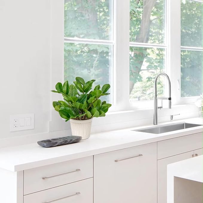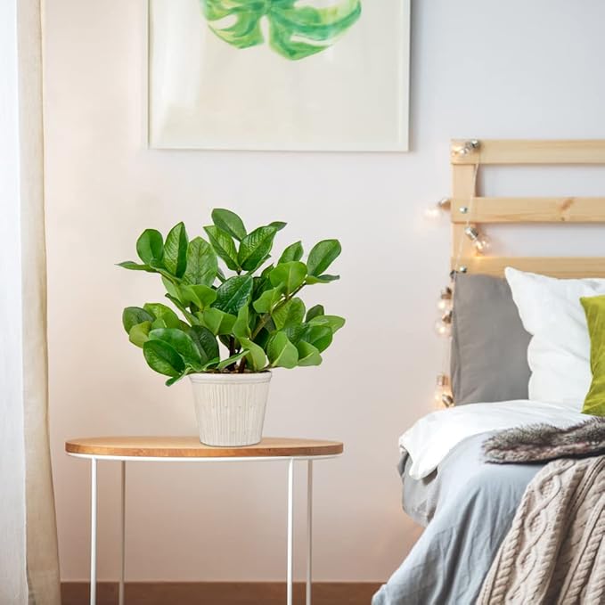 - Lush Appearance and Real Touch ZZ Plant: With its smooth, shiny leaves and vivid green color, the fake plant has a life-like texture, bringing vitality to your living space. The plant pot is ceramic and can be put in any larger pot. Perfect for workaholics who can not have a live plant, but still want to enjoy the beauty of nature.