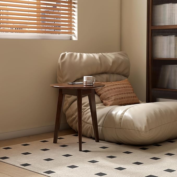 100% Solid Oak Round Side Table, Small Table w/Stable Frame, Round End Table, Small Side Table for Living Room, Bedroom, Couch(Walnut, 17.71" D x 19.68" H)