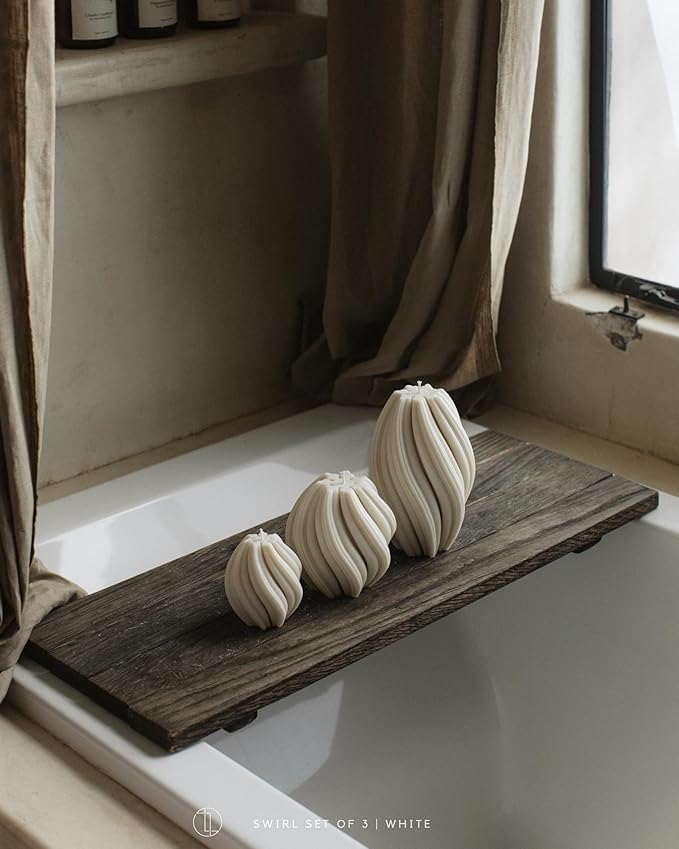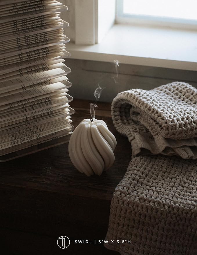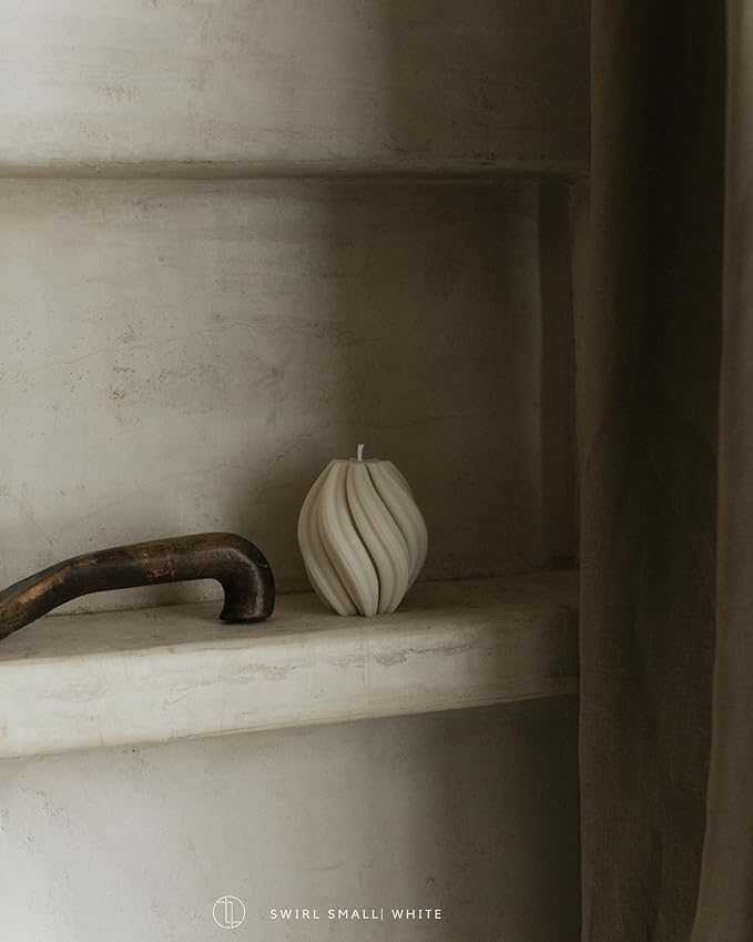 LAWA Swirl Candle - Beautiful Handmade Pillar Scented Soy Wax Twirl Elegant Bubble Aesthetic Candle Housewarming Gift Home Room Shelf Decor Idea Spiral White (Small)