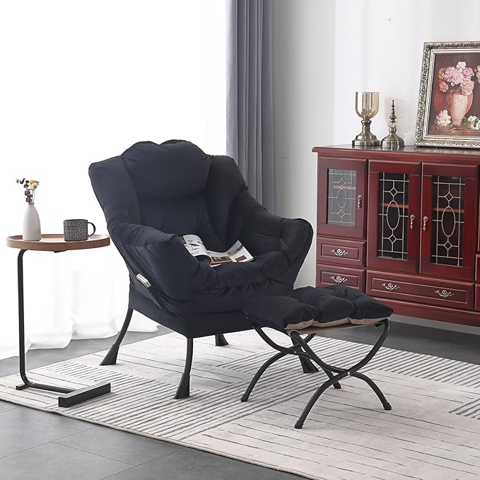- LAZY CHAIR WITH OTTOMAN: The lounge chair is equipped with a footstool on which you can rest and enjoy the extremely comfortable seating experience. And, you can also place the stool next to the sofa and end table in the living room as a foot pedal to relax your feet, or you can place it in the hallway or doorway and sit on a small stool while you change your shoes. What's more, the footstool can be quickly folded up for easy storage when not in use.