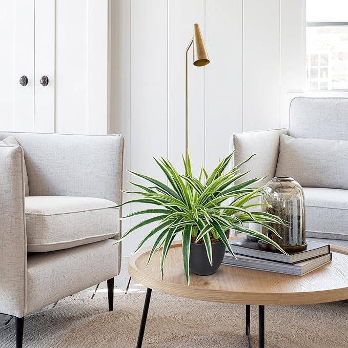 Fake Hanging Plant, Faux Spider Plant in Pot Artificial Grass Plants 12 Inch Faux Chlorophytum Comosum Potted Plants for Home Office Table Shelf Desk Kitchen Bathroom Bedroom Decor
