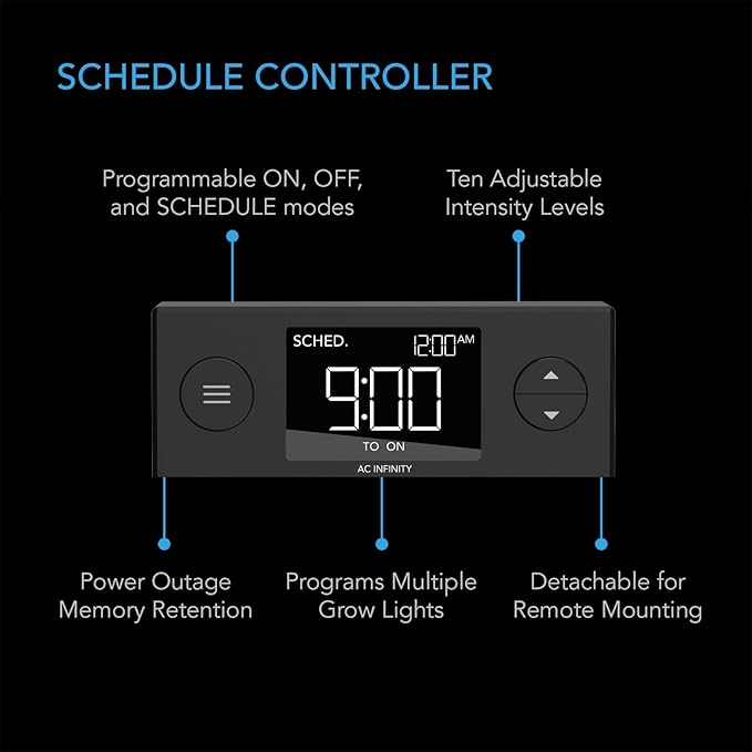 - Features a digital controller with ten light intensity levels and daily schedule programming.