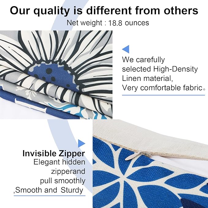 Decorative Throw Pillow Covers 20x20 Inch Pillow Covers Set of 4 Blue Pillow Cover Linen Square Pillow case,Farmhouse Throw Pillow Cover Outdoor Pillow Covers for Couch Sofa Living Room