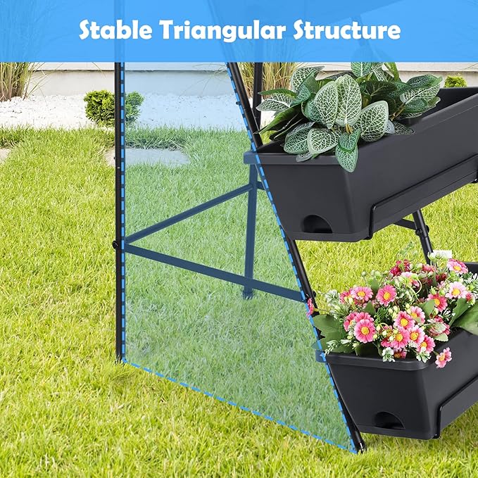 - 【Sturdy and Stable】: The frame of the vertical garden planter is made of high-quality metal material to create a more stable growing environment for your plants both indoors and outdoors. With the stable triangular design, our raised garden box will be an ideal choice for planting herbs, flowers, vegetables, etc.